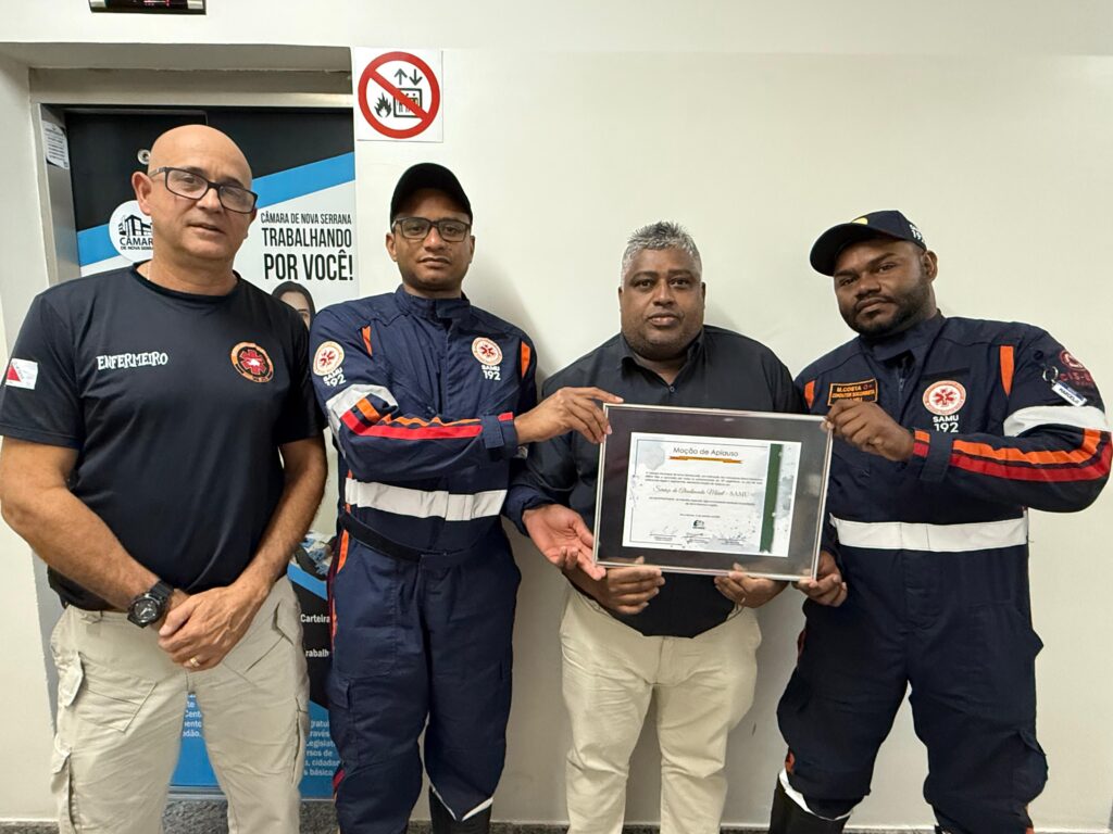 Na segunda-feira, 15 de setembro, os colaboradores da Base Descentralizada do SAMU em Nova Serrana receberam uma Moção de Aplausos dos Vereadores Breno Fonseca e Milton Klier Gomes, durante solenidade realizada na Câmara Municipal de Nova Serrana.