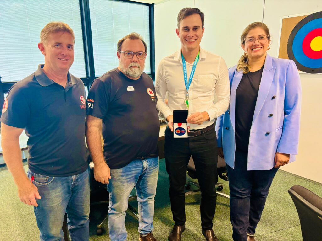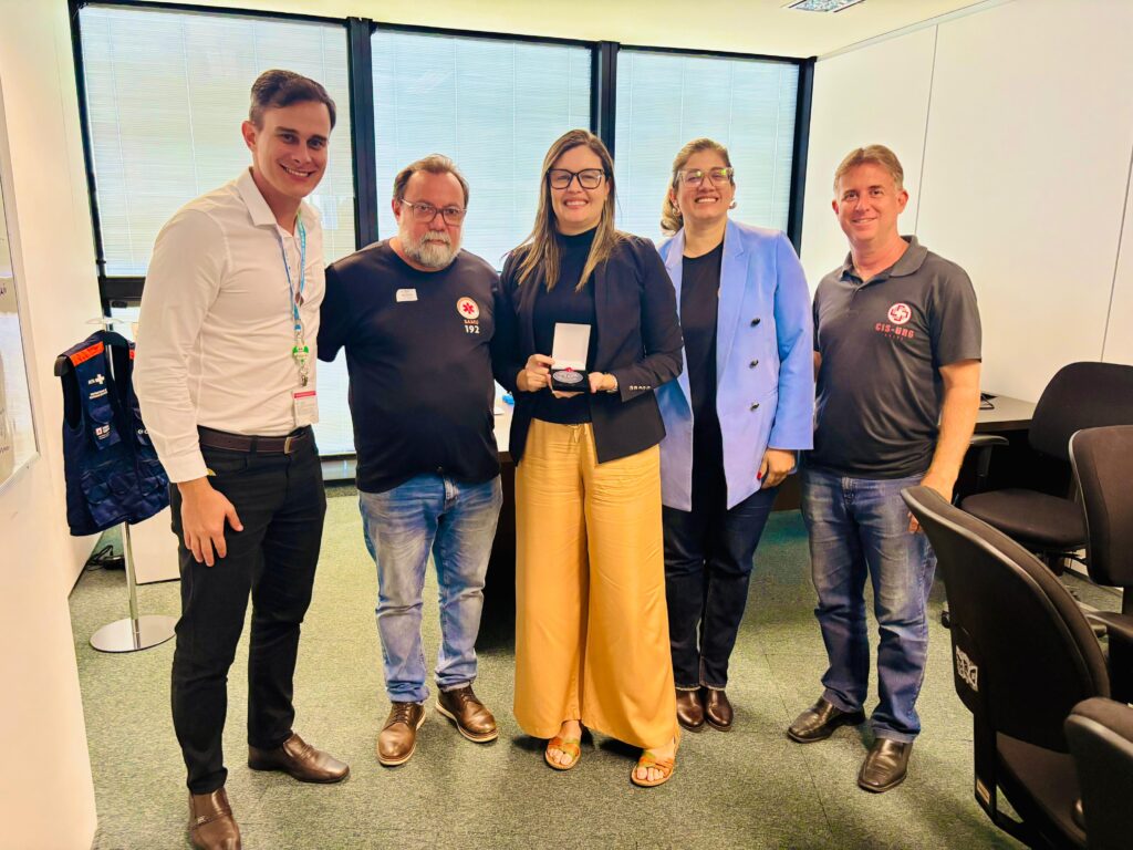 Ao final da reunião, o CIS-URG Oeste prestou uma homenagem especial a três servidores do Estado que desempenharam papéis fundamentais na organização do consórcio, na implantação do SAMU e na consolidação da expansão dos serviços na região: Camila Moreira de Castro, Subsecretária de Rede de Atenção à Saúde; Renan Guimarães de Oliveira, Subsecretário de Acesso a Serviços de Saúde e Suelen Lívia Novy, Coordenadora de Gestão Contratual e Financeira do Atendimento Pré-Hospitalar Móvel